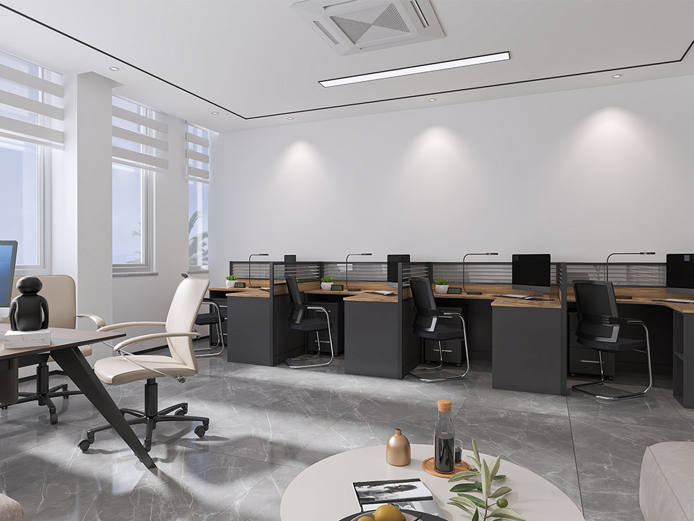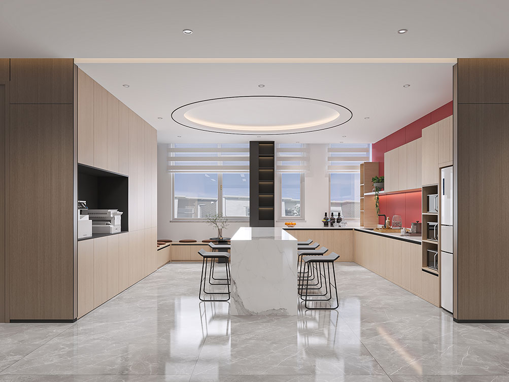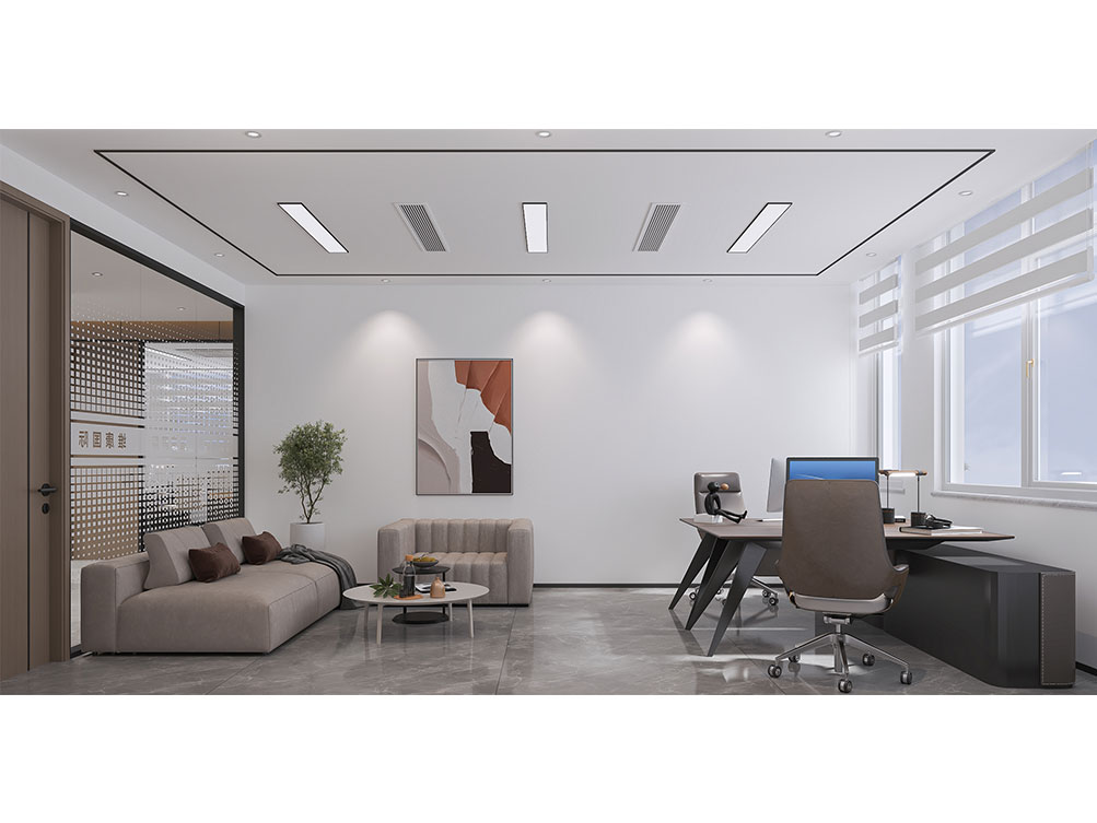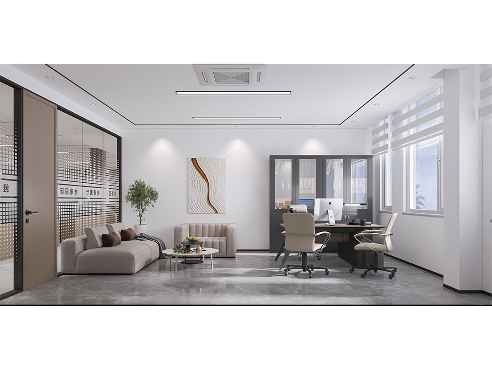 維康國際裝修效果以 “科技感 + 現代簡約” 為核心,主色調選用淺灰、白色搭配科技藍點綴,契合企業國際化、前沿化的定位。前臺接待區采用啞光金屬與玻璃拼接的背景墻,嵌入發光的 “維康國際” LOGO,搭配懸浮式接待臺與簡約藝術裝置,營造輕盈前衛的第一印象;開放辦公區采用模塊化智能工位,配備可調節燈光與充電接口,桌面預留無線投屏設備,滿足高效協作需求,墻面穿插企業全球業務版圖掛畫與綠植,平衡科技感與自然氣息;獨立辦公室以木飾面與玻璃隔斷結合,保障私密性的同時提升空間通透感,書柜陳列行業典籍與企業榮譽;洽談區選用質感布藝沙發與圓形茶幾,搭配暖光吊燈,為商務溝通營造舒適氛圍,同時在走廊、休閑區融入科技元素裝飾(如流線型燈帶、數字藝術屏),強化品牌調性,整體空間兼具國際化形象與實用辦公功能,貼合企業發展需求。