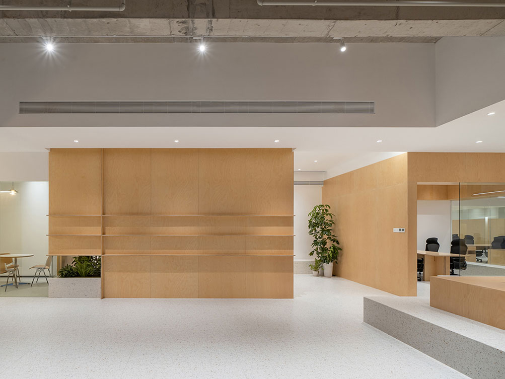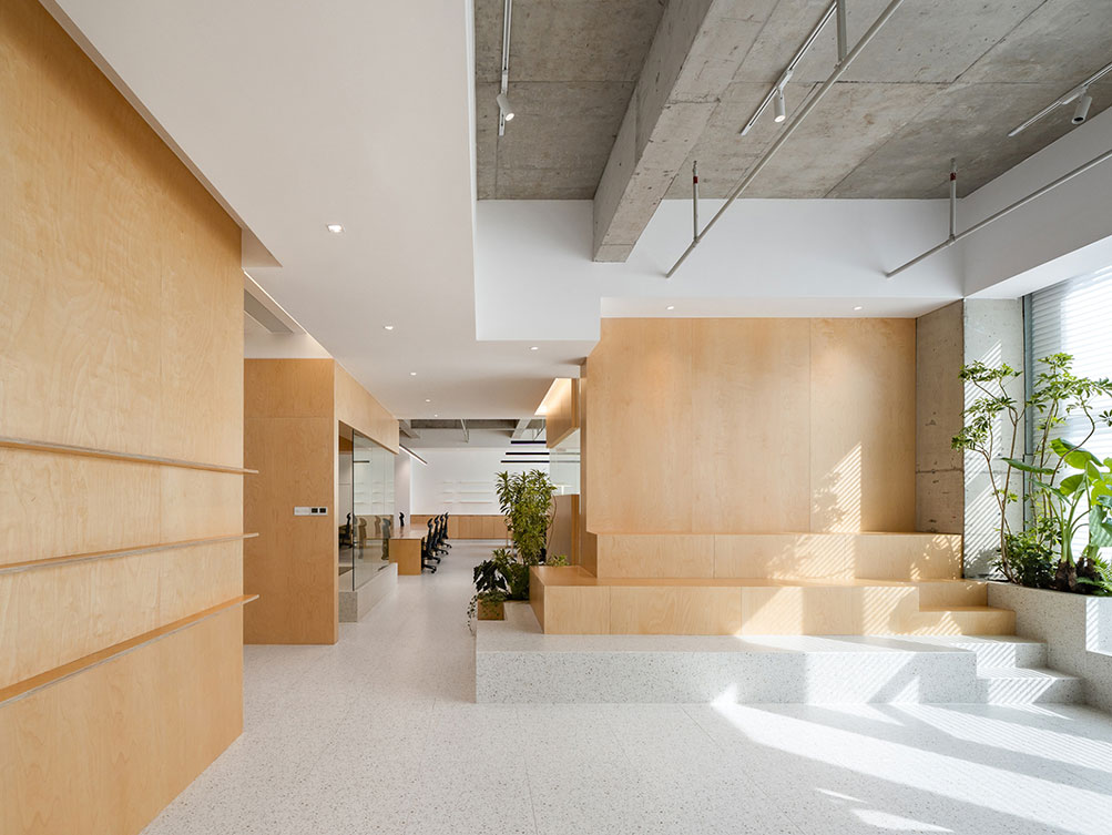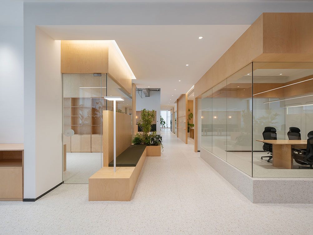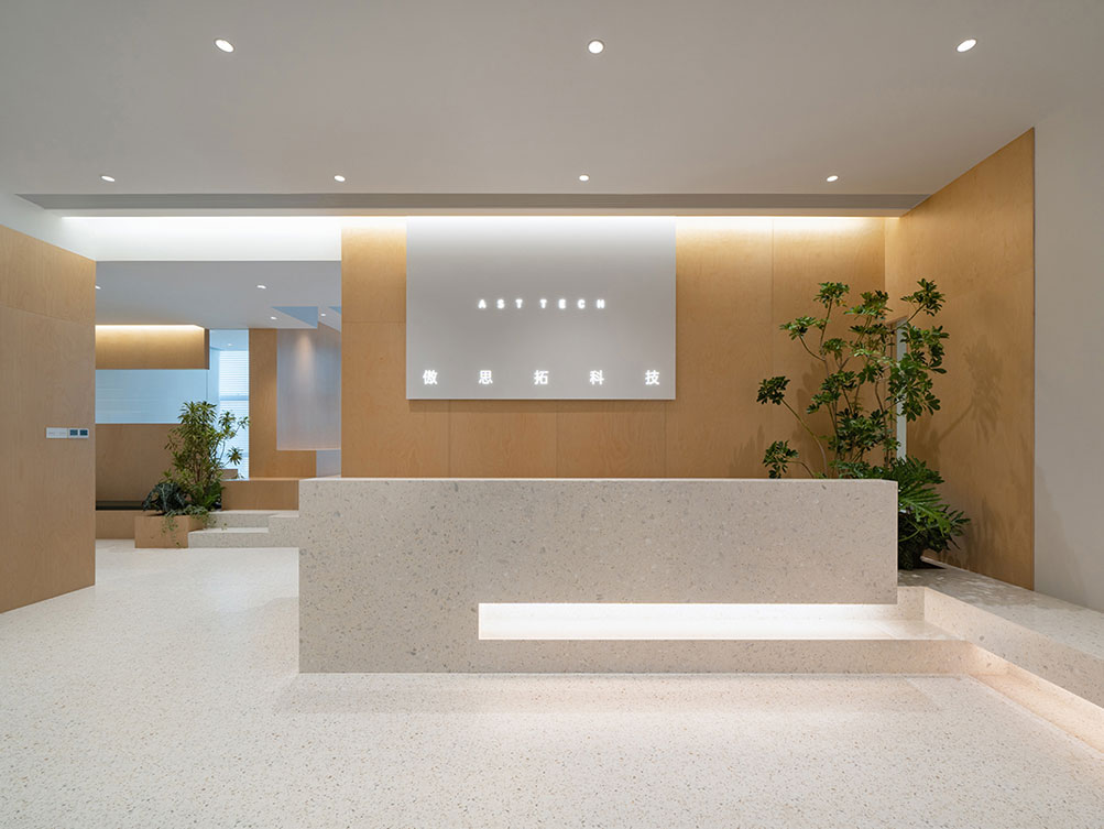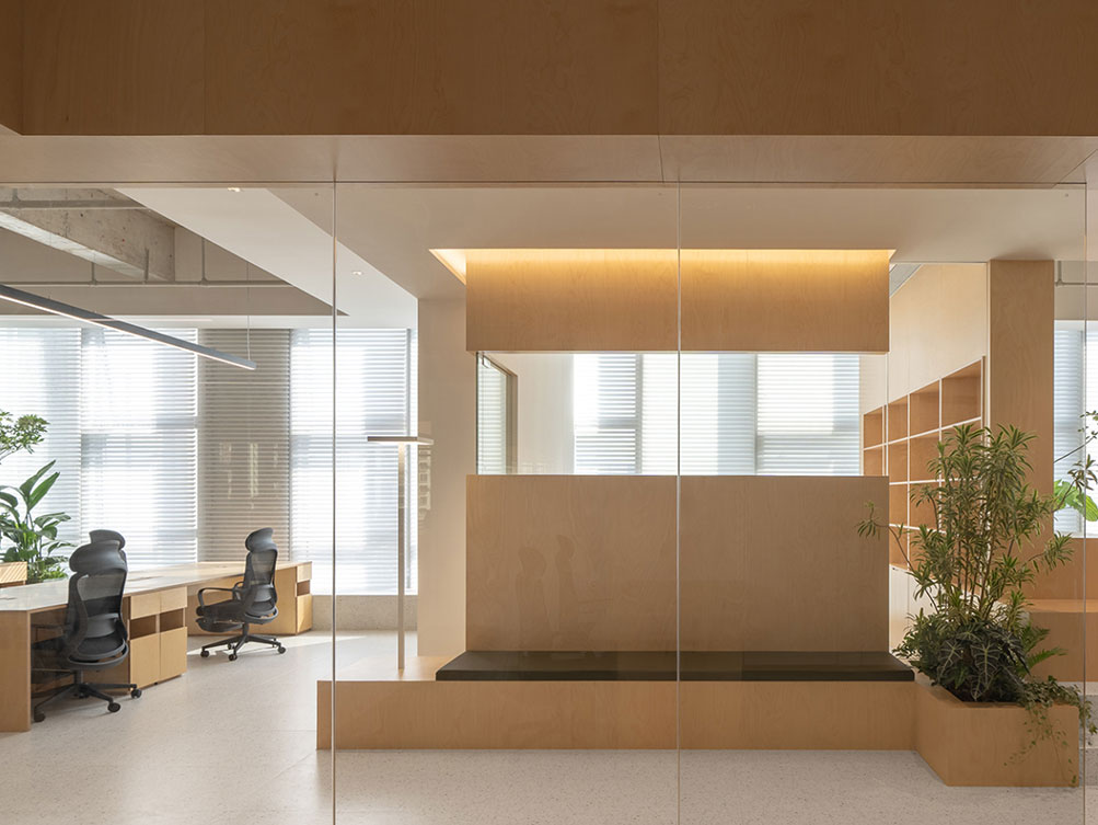 設計理念: 濟南辦公室裝修中傲思拓辦公室以自然共生為核,工業風清水混凝土頂搭配溫潤樺木,玻璃隔斷保障通透。開放區原木長桌適配協作,落地窗引自然光,綠植消解冷感,半開放休閑區兼顧多元場景,既保留空間肌理,又以自然元素營造松弛高效的辦公場域。